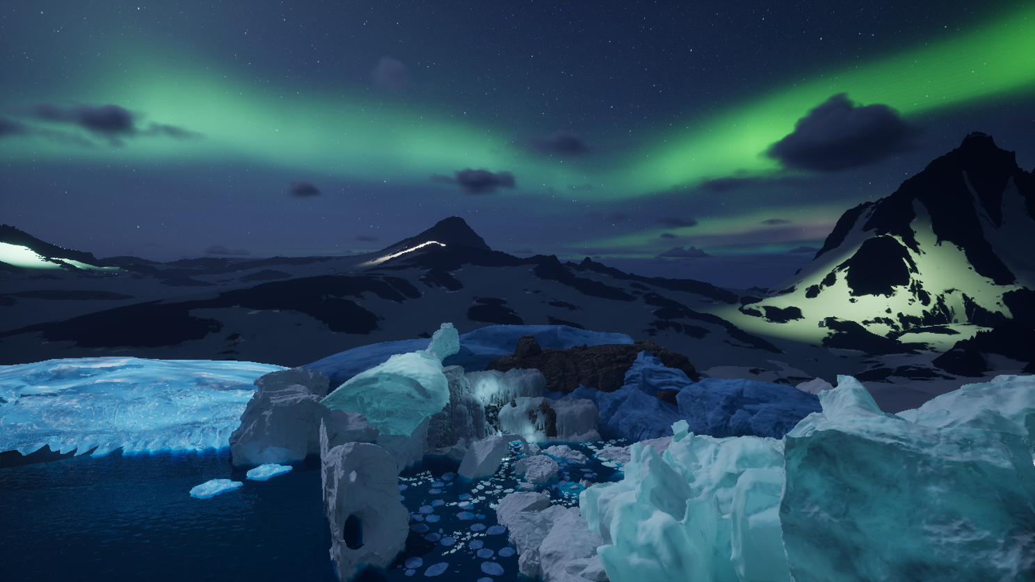 La scène Glaciale fut créer pour le film Dome Biomes Voyage, sélection officiel de SATfest 2024 ainsi que Fulldome UK 2024. De plus, ce film fut dans la collection éducative de la SAT durant l’année 2024-2025 et fut diffusée pour plus d’une cinquantaine de groupe de jeunes et de moins jeunes.